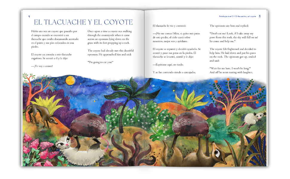 When you enroll in our Llamitas Spanish Level 3 Curriculum, you receive access to our very own folktales anthology with six beautifully illustrated stories.