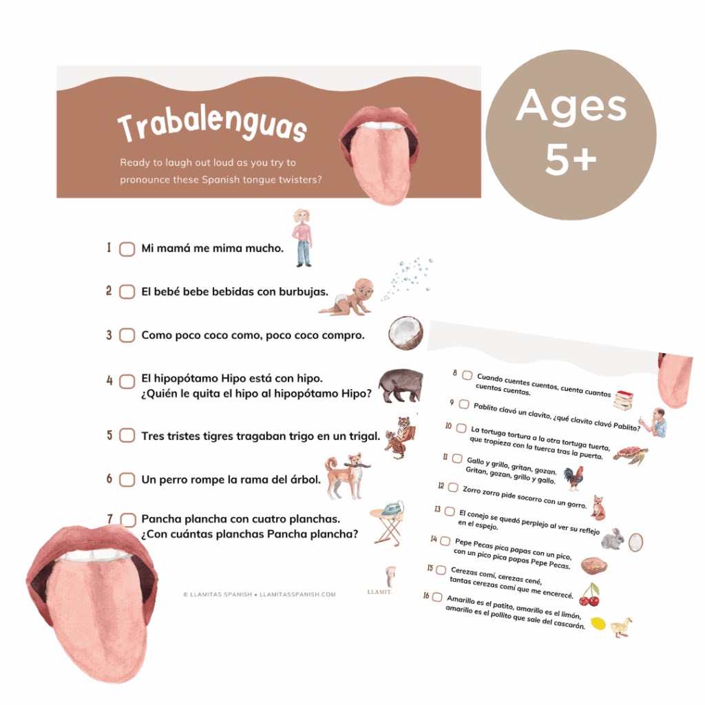 In this post: Ready to laugh out loud learning Spanish? Try these 15 hilarious Spanish tongue twisters for kids! Plus FREE download!